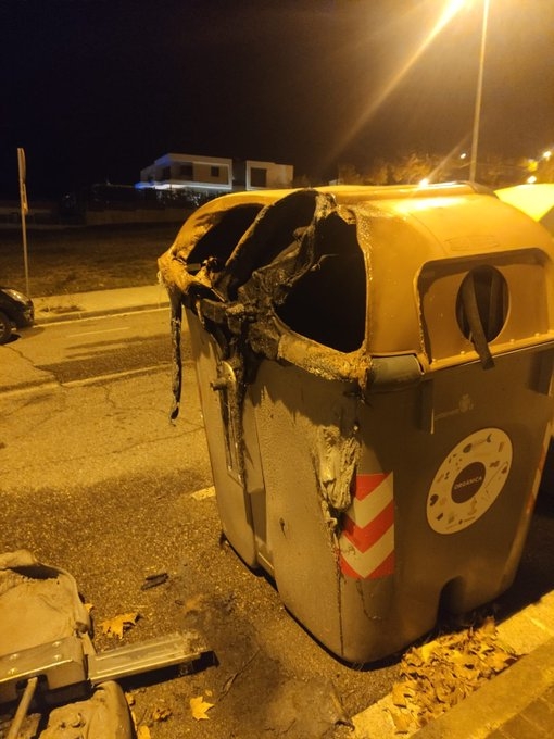 Aquest cap de setmana, uns vàndals van crear uns contenidors al barri del Pla de la Massa d’Igualada, entorn del Campus Universitari Igualada-UdL.