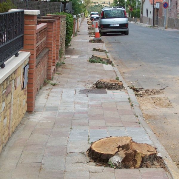 Això si, sempre troben una excusa per tallar els arbres, normalment diuen que estaven malalts o que feien nosa. En aquest cas dels arbres del carrer Montserrat l’excusa ha estat que s’han de fer noves les clavegueres dels carrers Montserrat, Verge de la Mercè i Virolai i que aquests arbres fan nosa i a més que són els culpables de que les velles clavegueres es fessin malbé. Però la veritat és que si les arrels dels arbres han entrat a les clavegueres és que aquestes ja s’havien fet velles i estaven fetes d’una manera i amb uns materials que han propiciat que això pogués passar. Si l’Ajuntament hagués volgut aquestes obres s’haurien pogut fer sense tallar cap arbre i posant uns col·lectors resistents a les arrels dels arbres i amb unes voreres noves amb uns escocells adaptats a la grandària d’aquestes mèlies.