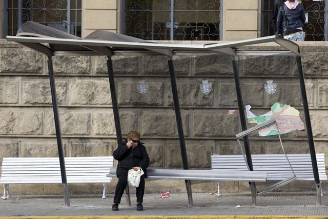 Aquest és l'aspecte que oferia un matí de finals de setmana la parada de bus de la Plaça del Rei