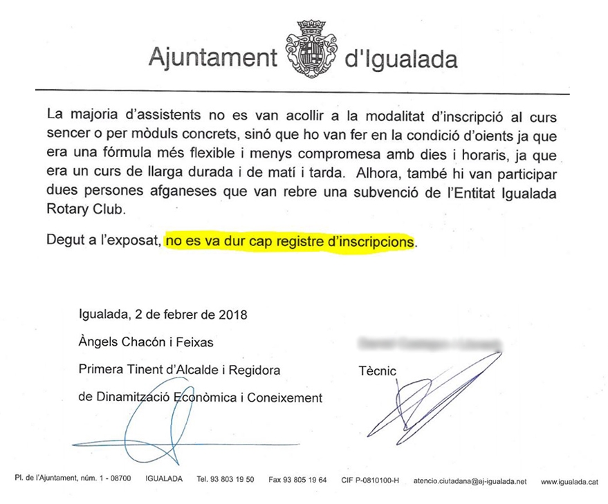 La responsable de l'Escola de Pau ha respost en un comunicat a les declaracions de la CUP Igualada sobre el balanç d'inscrits de l'Escola de Pau. Manifesta que "hi ha universitats de primera línia que estan publicitant els estudis" que es faran a Igualada i demana una disculpa "per un projecte que en la seva segona edició està agafant una arrencada espectacular".