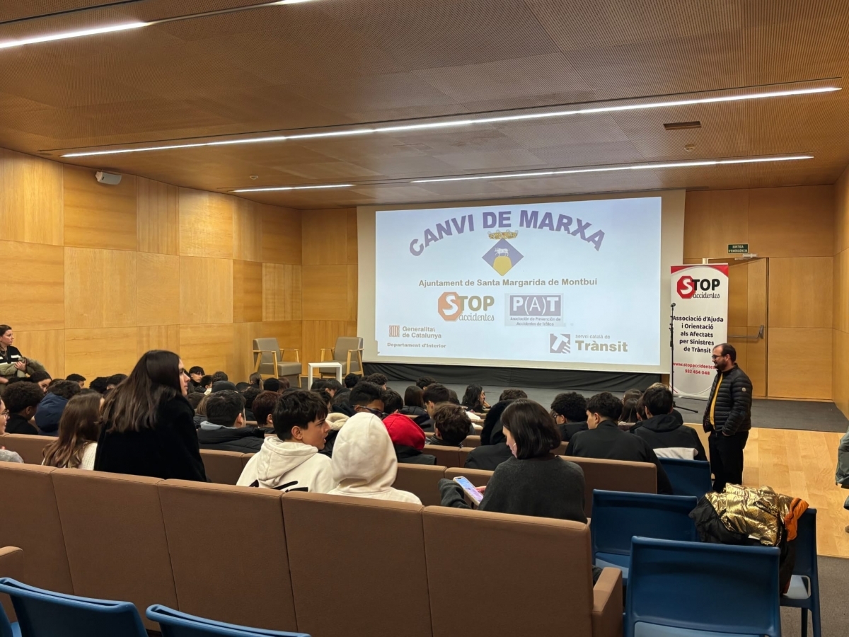 La Sala Petita Mont-Àgora de Santa Margarida de Montbui va acollir l'activitat educativa “Canvi de marxa”, adreçada als més joves, i que combina teatre, audiovisuals i testimonis reals per conscienciar els joves d’entre 14 i 18 anys de les causes dels accidents i les seves conseqüències, per tal de fomentar conductes responsables i d’autoprotecció.