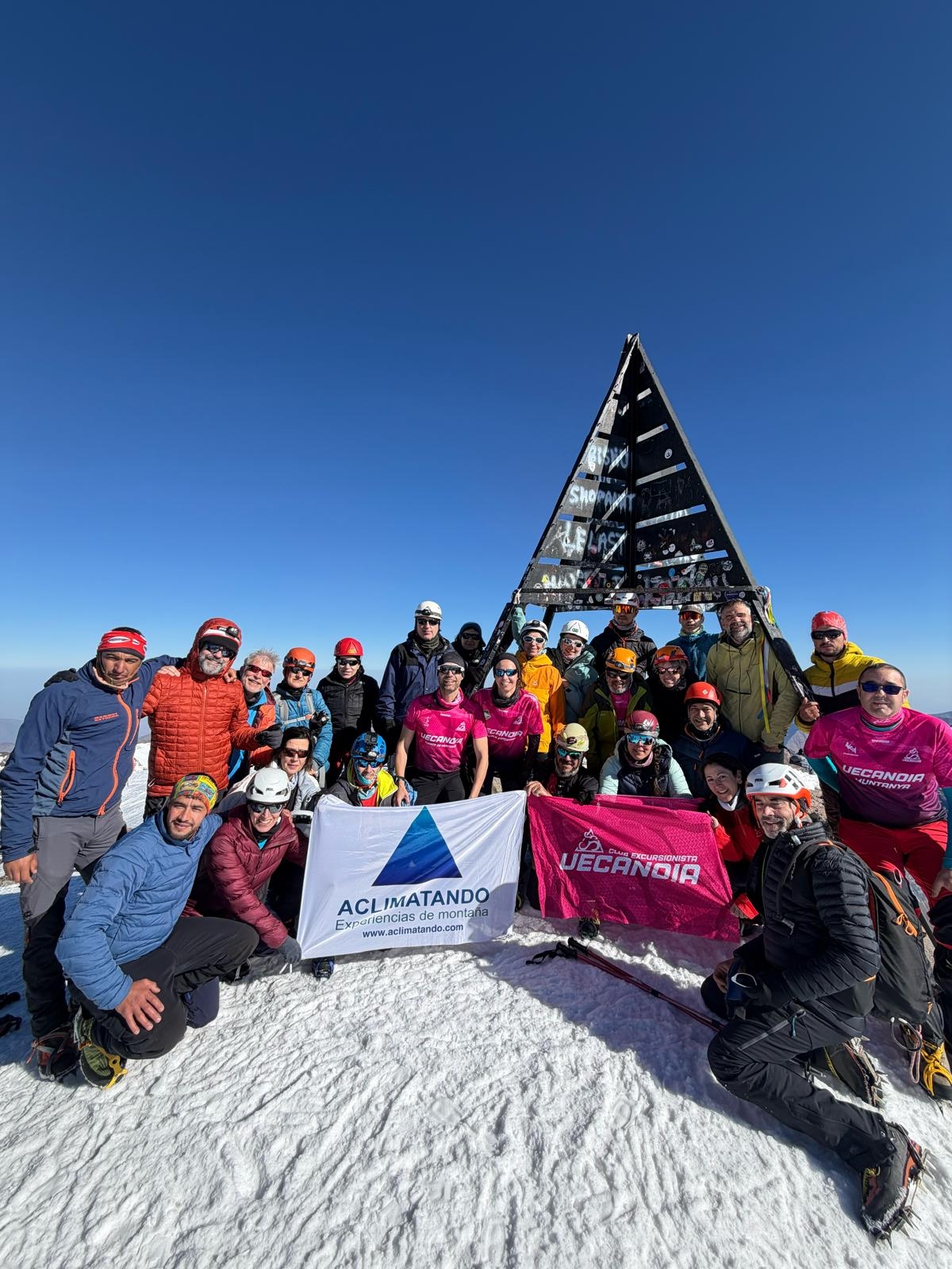 La primera nit es va fer a Aroumd, en allotjaments berbers típics, en un entorn de gran bellesa i amb contacte directe amb la cultura local. L’endemà, un grup de 20 integrants, acompanyats de guies locals --obligatoris per accedir al Parc Nacional--, van iniciar l’ascensió fins al refugi del Toubkal (3.207 m), conegut com el refugi francès, en un recorregut amb un desnivell positiu d’uns 1.300 m i amb neu en el tram final. Després de fer nit al refugi, l’endemà es va iniciar l’ascensió al Toubkal (4.167 m). La presència de neu va fer imprescindible l’ús de grampons i material de muntanya hivernal. L’ascens es va fer a un ritme pausat però constant, afavorint l’adaptació a l’alçada. Finalment, tot el grup va assolir el cim sota un sol radiant, amb vistes sobre tota la serralada de l’Atles. Després del descens fins al coll (3.960 m), una part del grup va aprofitar per pujar també al Toubkal Oest (4.087 m), mentre la resta retornava al refugi.
