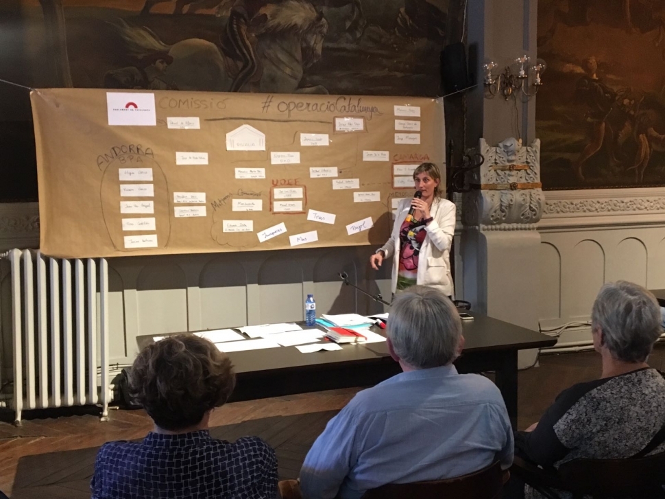 Alba Vergés va explicar davant de desenes de persones qui és qui a l'Operació Catalunya, aquest dimecres al vespre al Casal Popular d'Igualada. La diputada ha presidit la Comissió del Parlament sobre l'Operació Catalunya, un entramat articulat entorn el Ministeri de l'Interior que hauria cercat esquitxar els representants independentistes amb sospites de corrupció. Al millor estil de les sèries americanes, Vergés va donar a conèixer les relacions d'aquesta xarxa de clavegueram, que encara està en bona part sota cobert i de la que queda molt per saber.
