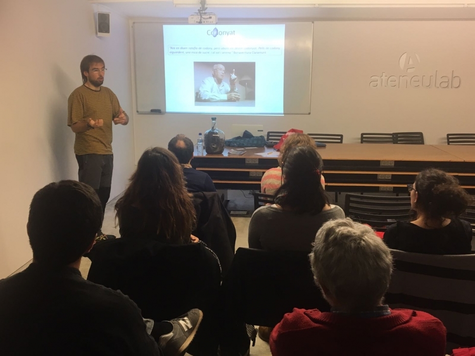La fotografia correspon a la xerrada "Un viatge al assat i un somni de futur vers els aperitius, dolços I begudes dels nostres avis", que va anar a càrrec de Marc Talavera. Aquesta va ser la primera activitat de dissabte de la Festa. Va anar seguida del tast popular, el cerca tapes pel nucli antic i finalment, un dels plats forts: la Jam jamaicana 'Catalonia All-Stars' al Hot Blues, tot un clàssic. Ahir diumenge, a primera hora, van tenir lloc les activitats pels més petits: taller de panellets, maquillatge i pintura. Al migdia, el vermut que va desembocar amb el dinar popular 'ratafiaire'. Un any més ha quedat en evidència l'èxit d'aquesta cita imprescindible pels amants de la ratafia d'arreu de la comarca.