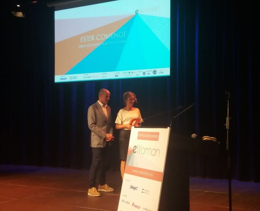 Nou reconeixement a la dissenyadora igualadina Ester Comenge, membre de l'estudi Burzon*Comenge i professora de l'Escola d'Art Municipal Gaspar Camps d'Igualada. Aquest dimecres, recollia el premi #eWoman, de dones emprenedores, en la categoria d'art digital. El premi l'atorga el grup editorial Prensa Ibérica i l'anoienca va ser a Manresa junt a unes altres quatre dones guardonades.