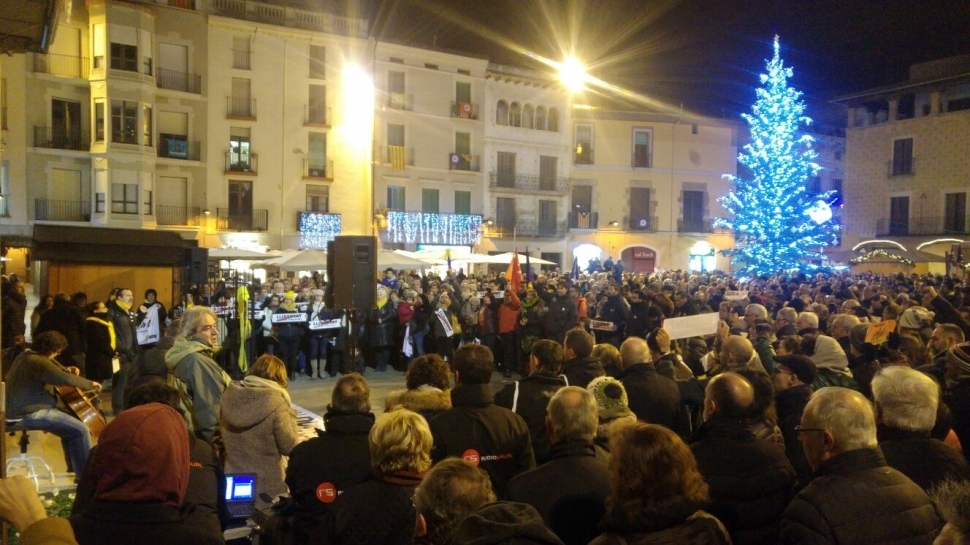 A poques hores perquè comenci una campanya electoral marcada per les detencions d'activistes i polítics catalans, a davant dels ajuntaments de Catalunya es produïen concentracions de reivindicació. La convocatòria d'ANC i Òmnium recordava encara a les quatre persones que continuen a les presons espanyoles: Oriol Junqueras, Joaquim Forn i els dos Jordis: Cuixart i Sànchez. A Igualada, de nou, la resposta ha estat multitudinària i la plaça s'omplia amb més d'un miler de persones i crits de 'llibertat'.