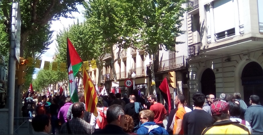 La jornada de l'1 de maig va tenir a Igualada dos focus, amb les manifestacions convocades per CCOO i UGT, per una banda, i per CGT, SEPC, COS, Intersindical i la CUP, junt a diferents organitzacions de l'esquerra alternativa. En el cas d'aquesta segona mobilització (a la foto), la marxa va començar a la Masuca i va desembocar al centre de la ciutat. Els centenars de manifestants van reclamar consignes en clau obrera, feminista i a favor de la llibertat dels presos polítics.