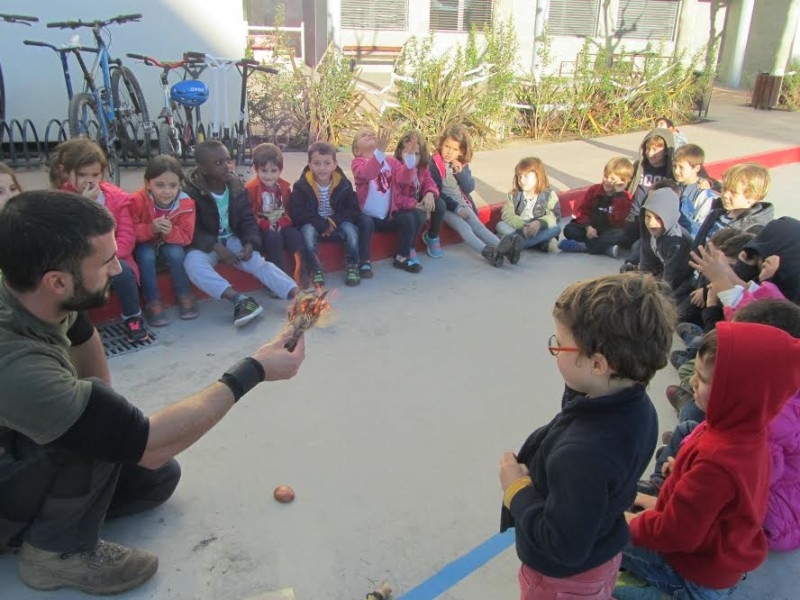 Els alumnes de P5A de l'escola estan treballant el projecte de la Prehistòria , concretament, el Paleolític. Estan aprenent els nostres orígens, l'evolució de l'home, com vivien en aquella època, què menjaven, com vestien, com feien les joies, com era l'entorn… Van rebre la visita del Carlos Vico (especialista en supervivència). Els va explicar moltes coses sobre els prehistòrics: com vivien, com caçaven i va ensenyar-los com feien les llances i canyes de pescar, el material que utilitzaven i on l’aconseguien. Va portar sílex perquè el poguessin veure i tocar. També va explicar com van descobrir el foc, com el feien i per a què el feien servir. Va ensenyar les dues tècniques possibles per fer-lo: per percussió i per fricció. Va ser tota una experiència.