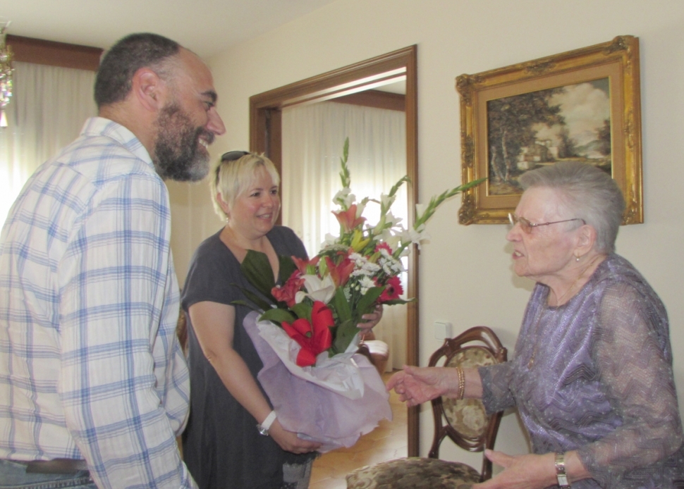 La calafina Pepeta Muxí Font va viure una diada ben especial la setmana passada, quan va complir els seus 101 anys de vida. Una edat ben avançada que la Pepeta gaudeix amb una bona salut i, sobretot, amb un excel·lent sentit de l'humor. Des del consistori de Calaf es va voler felicitar la protagonista de la jornada amb un ram de flors, que li lliuraven personalment l'Alcalde, Jordi Badia, i la regidora de l'àrea de Serveis a les persones, Montserrat Isern. A més de conversar una bona estona amb l'àvia i la seva família, es va brindar a la salut de l'homenatjada. I és que complir els 101 anys ja és tota una fita, i més si es fa amb els ànims i l'alegria de la Pepeta. Moltes felicitats!