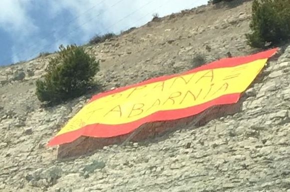 La setmana passada, al talús que hi ha a l'autovia A-2 a l'altura de Montmaneu, en sentit Lleida, hi apareixia una gegantina bandera espanyola amb el lema "Tabarnia=Espanya". A poblacions com Calaf o Vilanova del Camí també s'han vist els darrers dies, a balcons de particulars, l'ensenya d'aquest territori reivindicat per l'extrema dreta. En el cas de Montmaneu, la bandera estava ubicada a un punt ben visible del talús que fa nou anys es va desprendre i va ocasionar durant mesos talls en aquesta zona de l'autovia. Fonts municipals expliquen que no coneixen les circumstàncies en les que es va col·locar la bandera, en aquesta zona de difícil accés. Al cap d'uns pocs dies, va ser retirada per particulars.