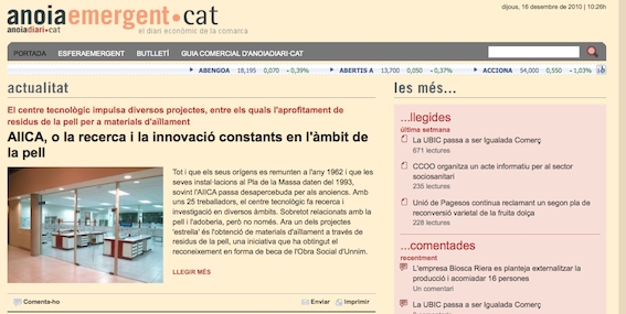 Tot i que els seus orígens es remunten a l'any 1962 i que les seves instal·lacions al Pla de la Massa daten del 1993, sovint l'AIICA passa desapercebuda per als anoiencs. Amb uns 25 treballadors, el centre tecnològic fa recerca i investigació en diversos àmbits. Sobretot relacionats amb la pell i l'adoberia, però no només. Ara un dels projectes 'estrella' és l'obtenció de materials d'aïllament a través de residus de la pell, una iniciativa que ha obtingut el reconeixement en forma de beca de l'Obra Social d'Unnim.