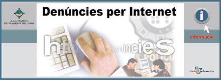 En la pàgina principal del web vilanoví www.vilanovadelcami.net trobareu un apartat dedicat e les Denúncies per Internet. Des d'allà podreu accedir a un formulari de la Policia de Catalunya i omplir la denúncia. Però perquè la denúncia tingui eficàcia jurídica, caldrà signar una còpia en paper o bé a la comissaria de la Policia Local vilanovina (a la Plaça Castells, número 1, baixos) o bé a qualsevol comissaria dels Mossos d'Esquadra dins de les 72 hores següents a la seva tramesa.