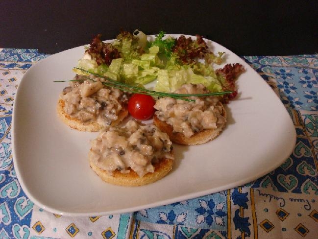 1.- Tallem el pa a rodanxes (en fem tres talls per persona). Les fregim amb mantega. Ho reservem.