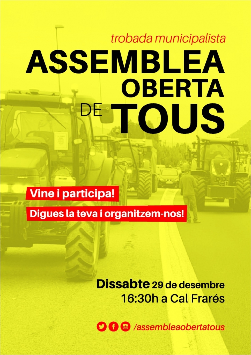 De cara a les eleccions municipals de 2019, hi pot haver una nova candidatura de l'esquerra independentista a l'Anoia. En aquest cas a Tous, on el passat dissabte hi va haver una assemblea oberta.