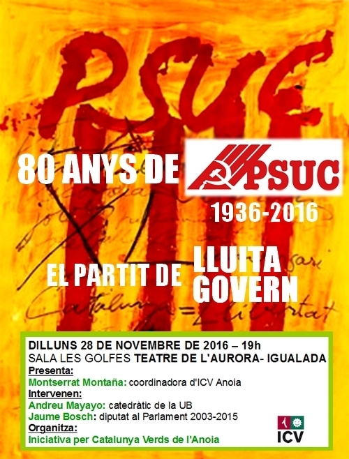Durant molts anys parlar de política a Catalunya era parlar del "partit", parlar del PSUC. Fa 80 anys quatre partits van veure que una forma eficaç de lluita contra el feixisme representat a casa nostra per l'aixecament militar contra la República era la unitat i van crear el Partit Socialista Unificat de Catalunya. Aquest vespre, es recordarà la trajectòria de la formació al Teatre de l'Aurora.