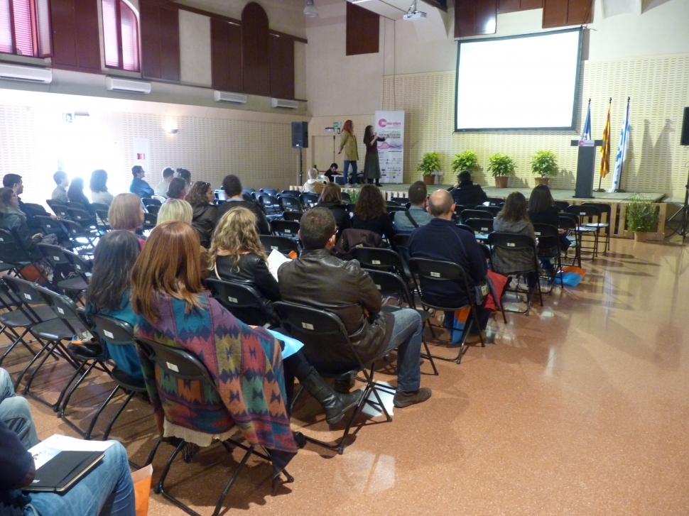 Alba Colell i Brigitte Escolar van representar l'Escola del Bosc de Rubió per explicar el seu projecte dins el marc de xerrades d'emprenedors que es va fer dissabte durant to el dia a l'Escorxador en motiu de la Biz Marathon