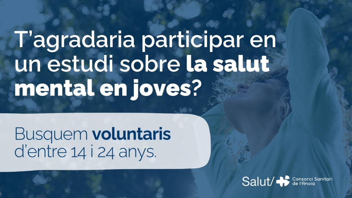 El Consorci Sanitari de l'Anoia (CSA) ha iniciat la cerca de joves d'entre 14 i 24 anys per participar en una investigació sobre salut mental. L'objectiu de l'estudi és desenvolupar nous tractaments psicològics mitjançant una aplicació mòbil, que pugui complementar el tractament presencial que s'ofereix als centres.