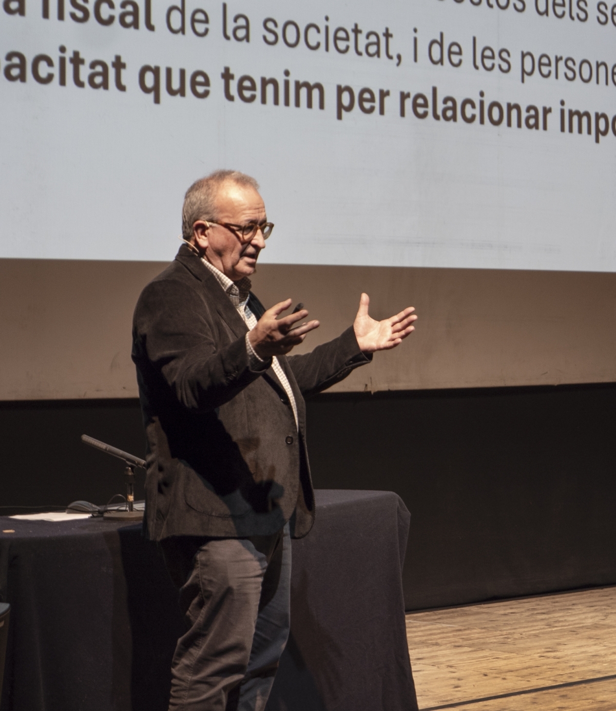 Amb un to pedagògic i accessible, el ponent va abordar el funcionament dels impostos municipals, que va preferir definir com a “contribucions”, destacant la necessitat de millorar la cultura fiscal de la ciutadania. En aquest sentit, va comparar la gestió d’un ajuntament amb la d’una gran economia familiar, que ha d’equilibrar ingressos i despeses per garantir els serveis públics.