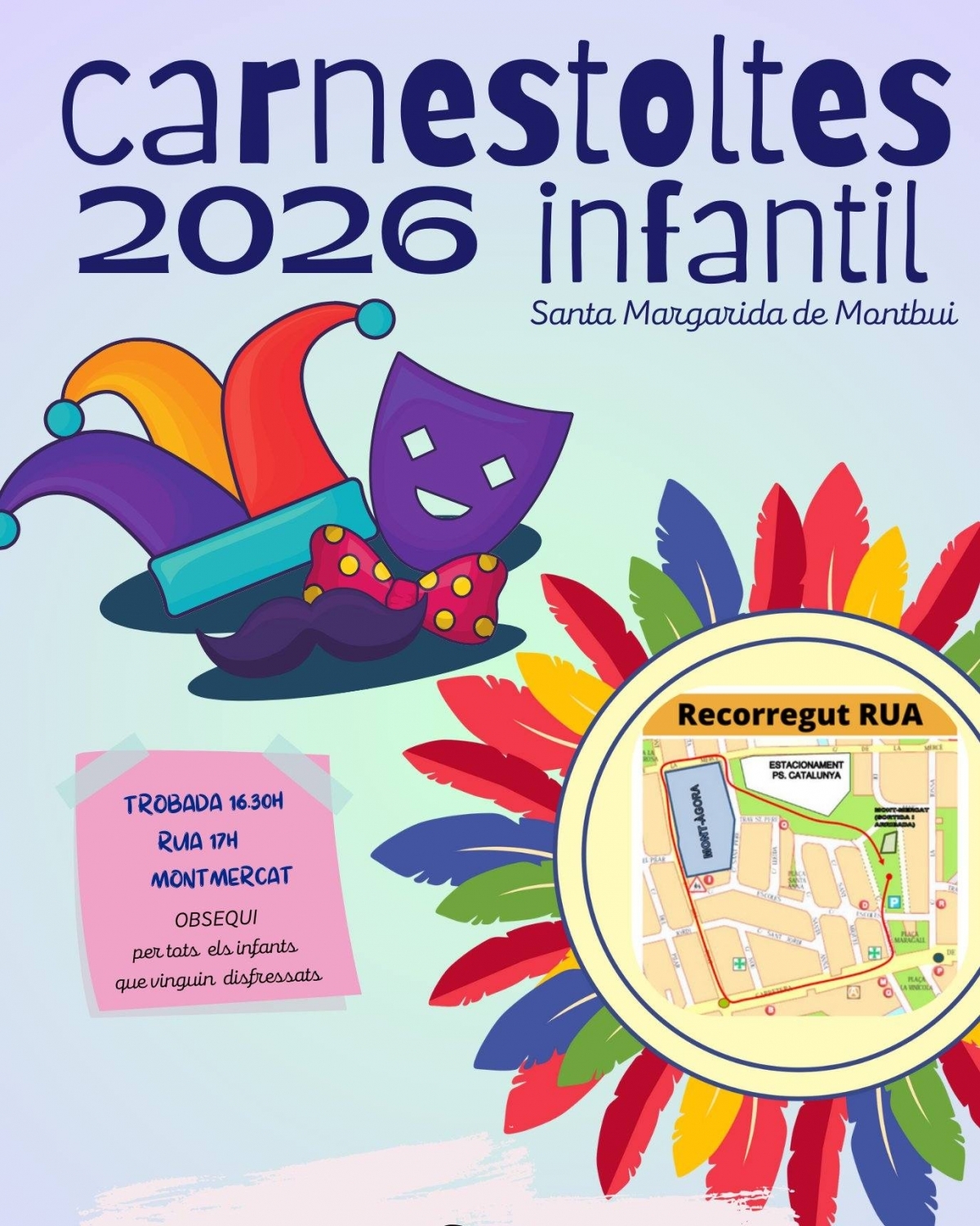 Aquest dissabte Santa Margarida de Montbui tancarà els carnavals de la comarca, i ho farà amb una proposta infantil que començarà a 2/4 de 5 de la tarda, des de Mont-Mercat i amb la rua per a adults que començarà a les 7 de la tarda des del carrer de la Mercè, zona barri de Vista Alegre.