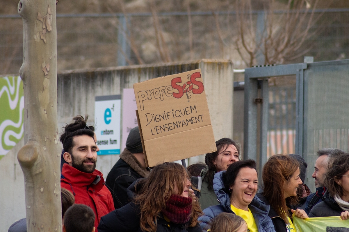 Lemes com “Ja n’hi ha prou!” o “Lluitant també estem educant” han protagonitzat, aquest dimecres, les protestes del professorat en un dia de vaga de tot el sector arreu de Catalunya.