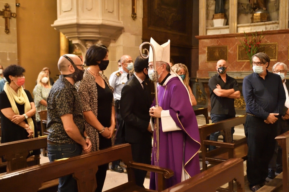Unes 250 persones van omplir la basílica de Santa Maria d'Igualada, aquest dimarts al vespre, en la missa pels difunts durant el temps de la pandèmia. La consellera Àngels Chacón va encapçalar les autoritats, junt als batlles de la Conca.