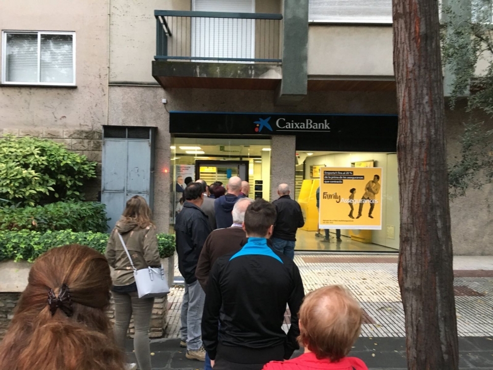 Aquest divendres tenia lloc una mobilització del bloc sobiranista contra l'empresonament de Jordi Sànchez i Jordi Cuixart, presidents de l'Assemblea i d'Òmnium, respectivament, amb la crida a retirar efectiu del banc. En algunes poblacions de la comarca s'han vist cues, en especial a alguns punts del centre d'Igualada.