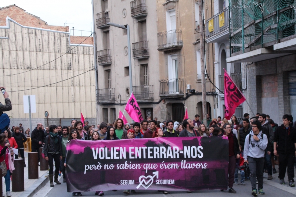 Amb el lema 'Els nostres somnis no es desallotgen', una mobilització de vora 300 persones va recórrer el centre d'Igualada. Es va acabar a 2/4 de 10 davant l'Ajuntament, amb l'enlairament d'avions de paper. Durant la marxa, es va produir el llançament de boles de paintball contra la rectoria i diverses accions als bancs de la Rambla, per part d'un sector dels integrants de la mobilització.
