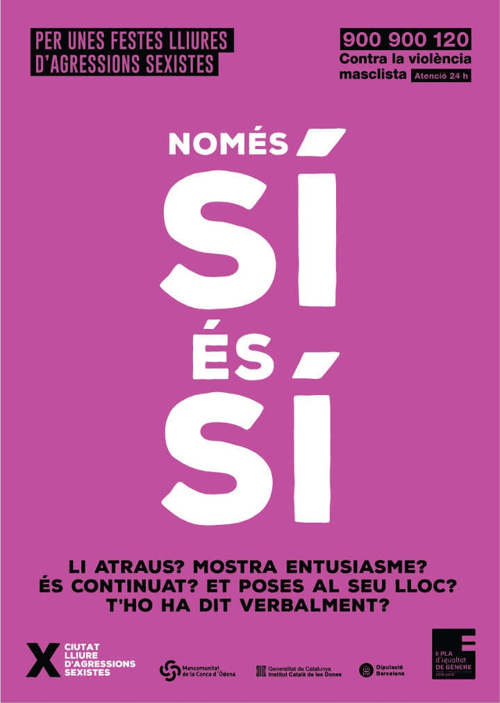 L’Ajuntament de Vilanova del Camí i la Mancomunitat Intermunicipal de la Conca d’Òdena (MICOD) tornaran a visibilitzar la campanya contra les violències sexuals per la Festa Major 2018. La campanya està a favor de les relacions lliures i igualitàries i s’emmarca en l’elaboració del Protocol d’Actuació davant l’Assetjament Sexual en espais públics d’oci.